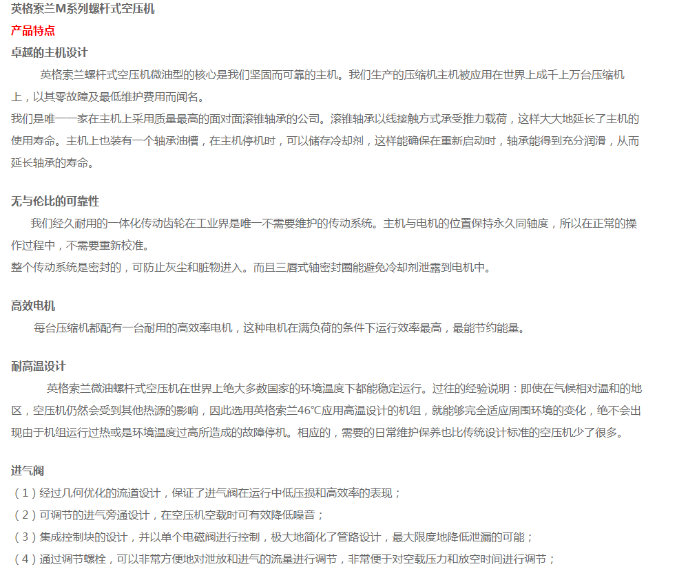濟(jì)南銳博特機(jī)械設(shè)備有限公司是英格索蘭空氣壓縮機(jī)的授權(quán)代理商,代理銷售美國(guó)英格索蘭全系列的空壓機(jī)及后續(xù)處理設(shè)備。公司自成立以來(lái),經(jīng)過(guò)公司全體同仁不斷努力,開(kāi)拓創(chuàng)新,以優(yōu)良的技術(shù)、完善的售后服務(wù),使得公司贏得了一個(gè)又一個(gè)的誠(chéng)心客戶。我公司擁有多名專業(yè)的銷售及售后服務(wù)人員,為客戶提供空壓系統(tǒng)的售前、售中及售后的全方位優(yōu)質(zhì)服務(wù)。另公司有多名具有英格索蘭壓縮機(jī)授權(quán)服務(wù)證書的服務(wù)工程師,能維修和保養(yǎng)國(guó)內(nèi)外各種品牌空壓機(jī),公司各種國(guó)內(nèi)外品牌空壓機(jī)配件庫(kù)存齊全。