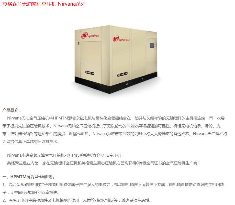 英格索蘭無油螺桿空壓機(jī)Nirvana