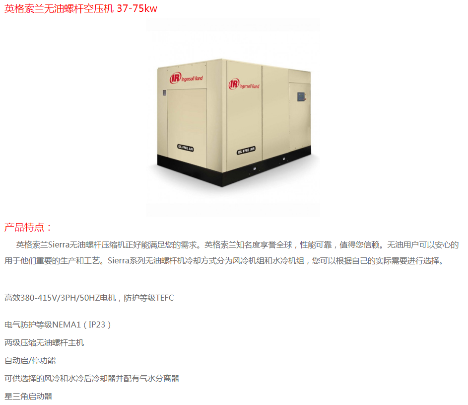 英格索蘭無油螺桿空壓機(jī) 37-75KW